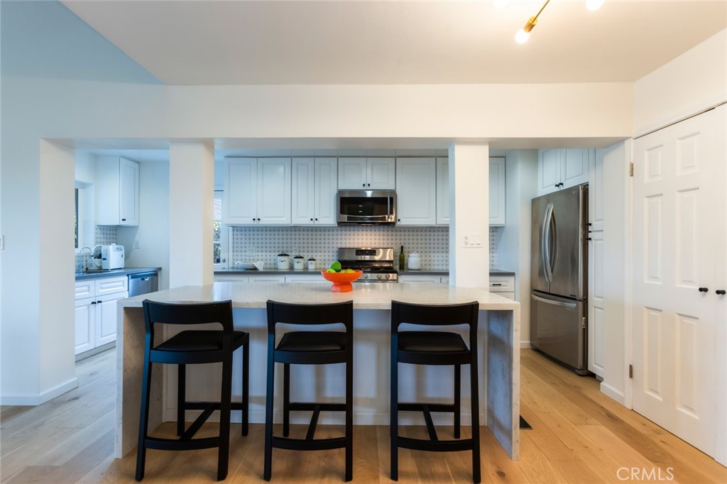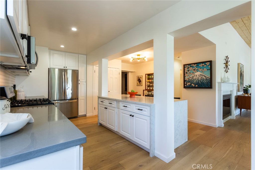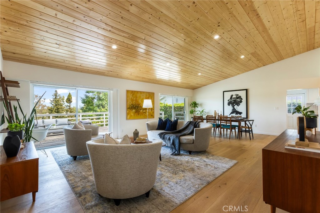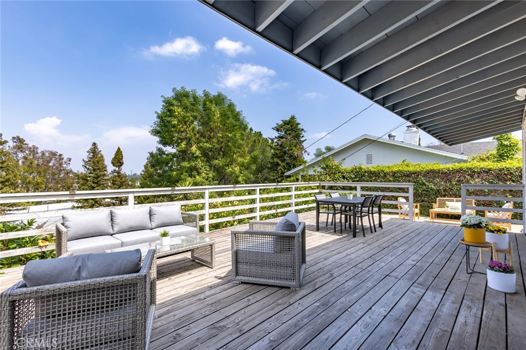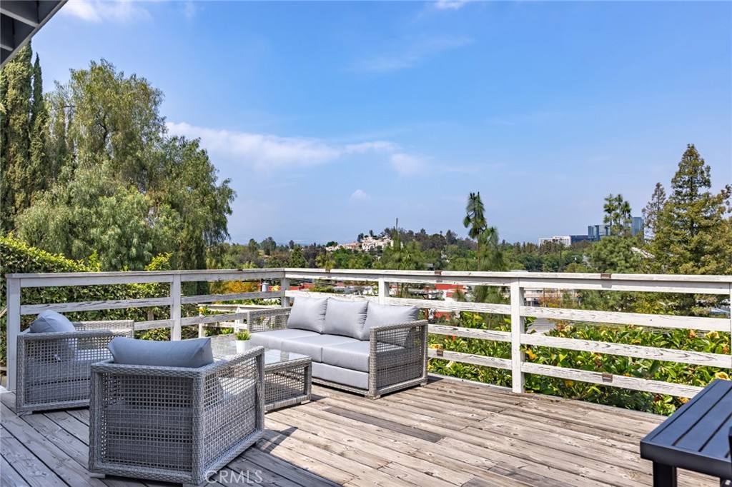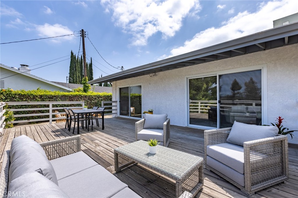 Exclusive Private showings available by same day appointment. Turn Key Updates include New Roof, Floors, Ceilings & much more! Now priced to sell and perfectly aligned with the current market value. Call to view this updated light-filled mid-century retreat that pairs modern comfort with hillside views, offering a private Woodland Hills escape. Discover sophisticated comfort in this beautiful 2-bedroom, 2-bathroom single-family home, located south of Ventura Boulevard on a quiet cul-de-sac at the top of one of Woodland Hills' most charming streets. Built in 1949 during the Mid-Century Modern design movement, this home blends timeless architectural character with thoughtful modern upgrades--perfect for first-time buyers, downsizers, and investors. Inside, you'll find new wide-plank oak floors, recessed lighting, and double-paned windows throughout for both style and energy efficiency. The northeast-facing living room features a fireplace and newly installed pine-paneled ceiling, creating a warm, sunlit space ideal for relaxing or entertaining. The open-concept kitchen offers smart storage and seamless flow, anchored by a quartz waterfall island with bar seating. It's fully equipped with a gas cooktop, gas oven,refrigerator, dishwasher, & generous cabinetry--ideal for everyday living & effortless hosting.The spacious primary suite includes an ensuite bath, spacious walk-in closet, and peaceful privacy. The front of the home is calm and quiet, offering a true neighborhood feel positioned near the top of the cul-de-sac. Step outside to a private backyard deck with mountain and city views--and even catch holiday fireworks from your own yard. A thoughtfully designed sunroom addition has been envisioned for this space that transforms the deck into expanded living. Imagine morning coffee in a sun-drenched room or a serene home office with garden and mountain views. Set on a full lot from Del Valle to Constanso, the property offers added privacy and a low-maintenance yard for those who prefer ease over upkeep or imagine a landscaped terrace installation. You'll enjoy the convenience of being close to everything, yet quietly tucked away. Quick access to Highway 101 makes commuting or weekend escapes a breeze. Located a short stroll to Casalena and moments to Ralphs, Trader Joe's, and more. Plus, you're within a half-mile of top-rated Woodland Hills schools. This home is priced to sell - Schedule your exclusive private showing today.